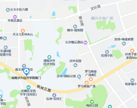 湖南涉外经济学院(长沙市岳麓区枫林三路822号,南门进入)。
